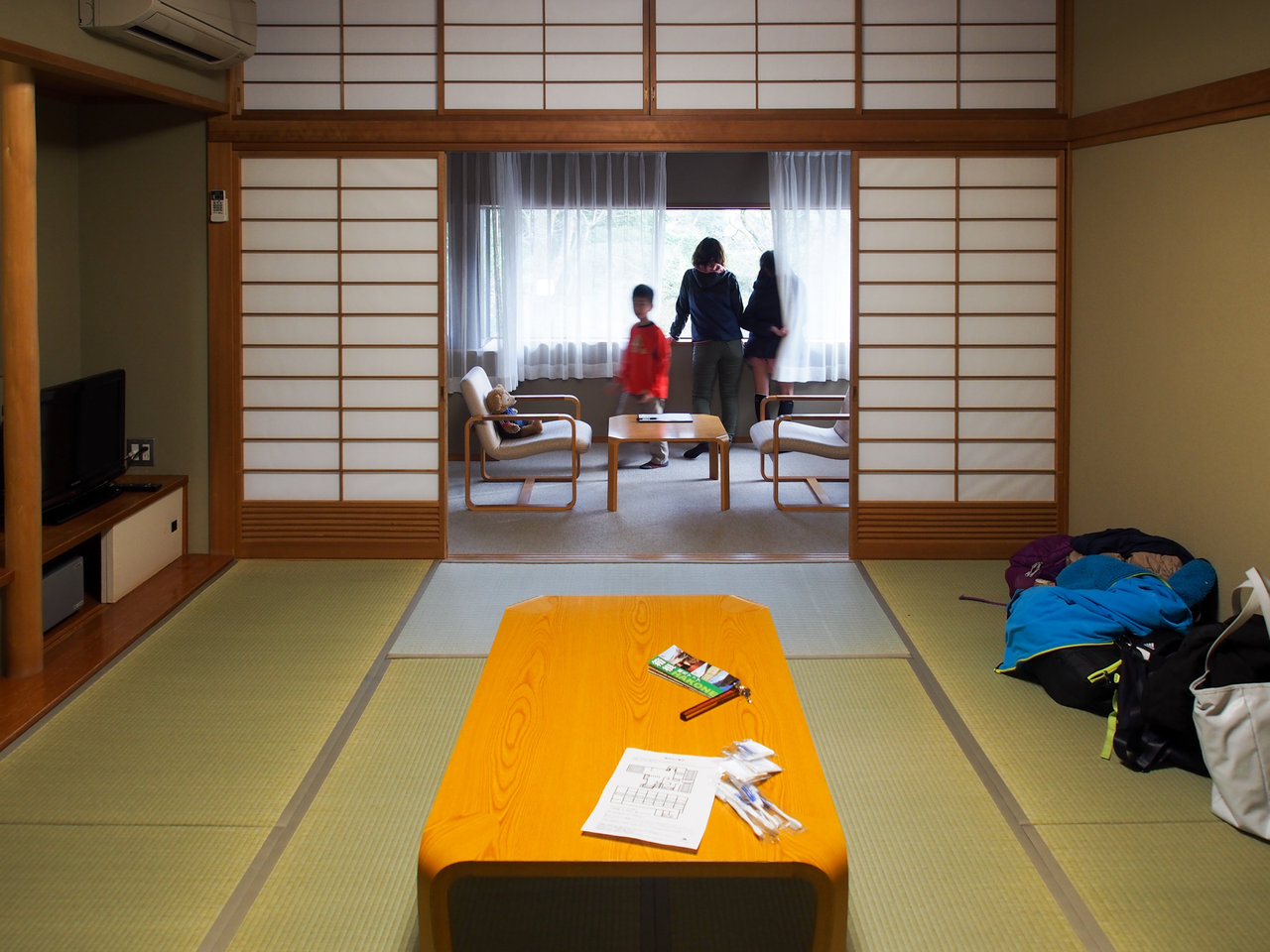 お部屋は201号室の和室10畳。4人家族にはちょうどいい広さでした。色々省略の中に旅館では定番のお茶うけがないとかありますが、良いんです全然。あと、必要なアメニティは受付時に自分でもらってくる感じでした。